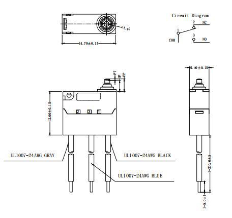 产品 > 小型微动开关3A电流 > H3-A带线系列